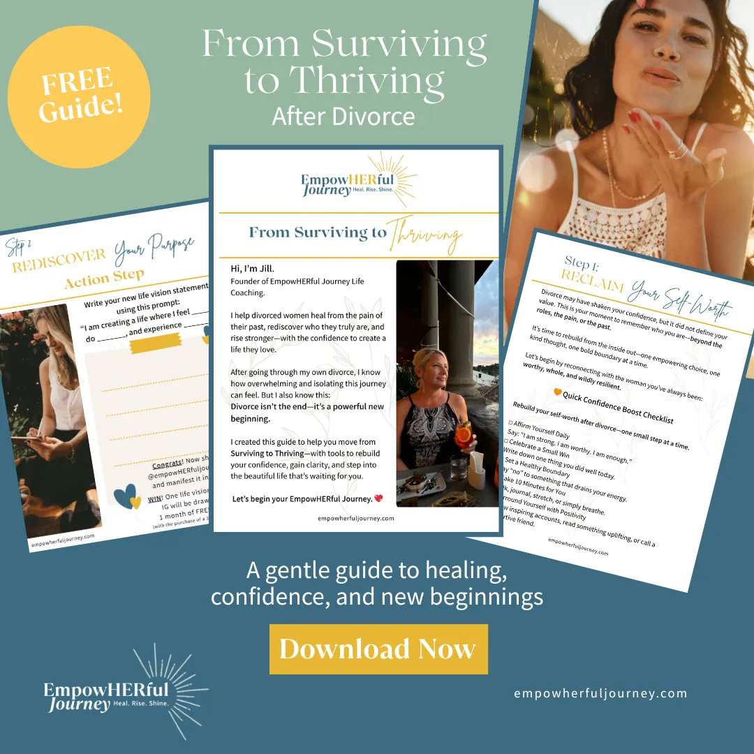 If you’re feeling emotionally exhausted, unsure of yourself, or stuck in survival mode after divorce, this guide was created for you. Inside, you’ll find gentle guidance, practical insights, and empowering next steps to help you begin healing and reconnecting with yourself—without pressure or overwhelm.
